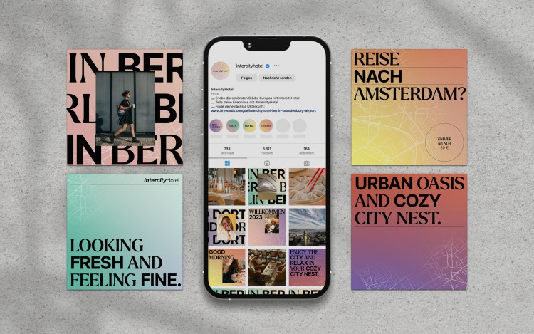 Der neue Auftritt der IntercityHotels erreicht mit Frische, Dynamik und Selbstbewusstsein eine breitere und jüngere Zielgruppe. Die Wandelbarkeit eines stringent definierten Corporate Designs erlaubt der Marke eine abwechslungsreiche Präsenz mit einem starken Wiedererkennungswert.